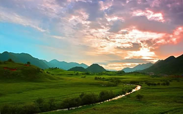 西流晚霞 紅池壩景區(qū)內(nèi)隨處都可觀賞晚霞美景,但最佳地點(diǎn)是西流溪邊海拔2076.3米的廟子包。晚霜灑滿草原,倒映溪中,天、地、人渾然一體,如詩(shī)如畫,韻味無(wú)窮。