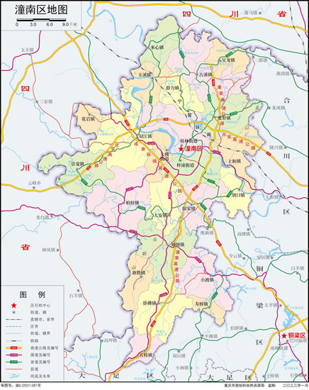 潼南區(qū),隸屬重慶市,位于重慶西北部、渝西地區(qū),是成渝新型工業(yè)基地、渝西生態(tài)文化旅游目的地、中國西部綠色菜都,成渝地區(qū)雙城經(jīng)濟圈核心板塊,是全國首批現(xiàn)代農(nóng)業(yè)示范區(qū)、國家衛(wèi)生城區(qū)和重慶主城都市區(qū)“橋頭堡”城市 。潼南屬盆地淺丘地貌,地勢平坦,海拔高度300—450米;氣候?qū)賮啛釒駶櫦撅L氣候。總面積1583平方千米;潼南區(qū)常住人口68.11萬人。潼南區(qū)轄3個街道、20個鎮(zhèn),區(qū)人民政府駐桂林街道興潼大道120號。