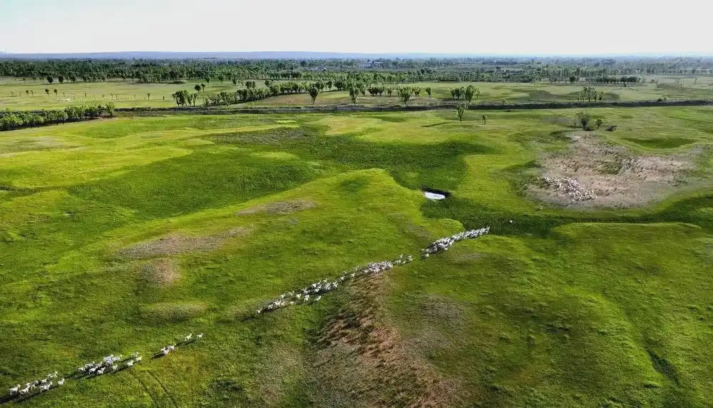 爾林兔草原地處鄂爾多斯高原與毛烏素沙漠過(guò)渡地帶,位于紅堿淖風(fēng)景名勝區(qū)東側(cè)。該區(qū)域通過(guò)生態(tài)治理實(shí)現(xiàn)從風(fēng)沙草灘區(qū)向天然牧場(chǎng)的轉(zhuǎn)變,形成面積達(dá)70平方公里的草原景觀。建有萬(wàn)畝草原、千畝花海等核心景觀,開(kāi)發(fā)了騎馬馳騁、草原露營(yíng)等特色旅游項(xiàng)目。