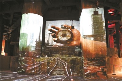 走進三高爐,以爐芯為載體放映的數(shù)字片《致敬鋼鐵》,呈現(xiàn)出獨特的觀影效果。爐芯、墻壁、地面,瞬間變?yōu)槠聊唬^眾可360度沉浸在鋼鐵故事中,了解北京乃至中國鋼鐵工業(yè)發(fā)展有重要貢獻的“功勛高爐”的歷史。