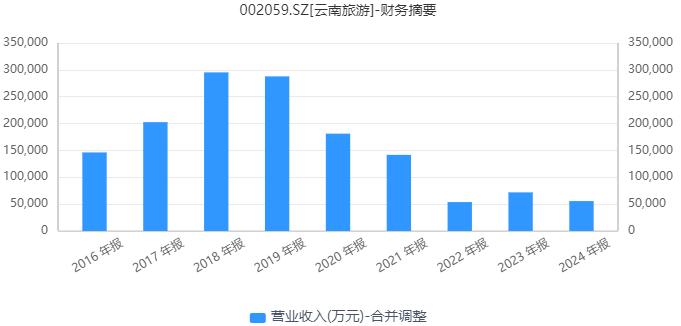 雖然擁有稀缺的旅游資源,但是在業(yè)績(jī)上,云南旅游卻沒(méi)有將優(yōu)勢(shì)轉(zhuǎn)化為利潤(rùn)。營(yíng)收方面,公司在2018年達(dá)到高點(diǎn)后就快速下滑,這幾年?duì)I收規(guī)模縮水較嚴(yán)重,2024年公司的營(yíng)收5.57億元,僅相當(dāng)于2018年?duì)I收的18%左右。