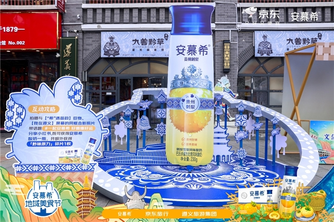 2025年9月23日至28日,隨著安慕希地域美食節(jié)第四站在貴州遵義1935文化街區(qū)圓滿落幕,京東旅行與安慕希攜手打造的"四城美味與文化盛宴"迎來收官。本次活動以新上市的安慕希貴州刺梨酸奶為核心,聯(lián)合遵義旅游集團,深度融合苗族蠟染、竹編非遺技藝,通過地域美食定制、文化體驗與品牌發(fā)布等多維創(chuàng)新,為現(xiàn)代消費者呈現(xiàn)一場味覺與文化的深度對話,標(biāo)志著文旅跨界營銷進入"地域深耕+文化再生"的新階段。