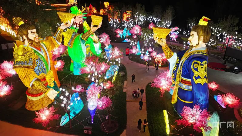 “快看,涿水女神在眨眼!”孩童驚呼引來眾人駐足。運(yùn)用動(dòng)態(tài)LED技術(shù),絹紗背后的女神眼眸流轉(zhuǎn),讓古老傳說瞬間鮮活。12米的“桃園三結(jié)義”燈組搭配實(shí)景情景劇,讓“三國(guó)演義從涿州開篇”的故事跳出書本。盧植、酈道元等先賢燈廊下,游客們借著暖光,細(xì)細(xì)品讀他們的生平,風(fēng)過廊下,燈影輕搖,宛如歷史在耳邊回響。