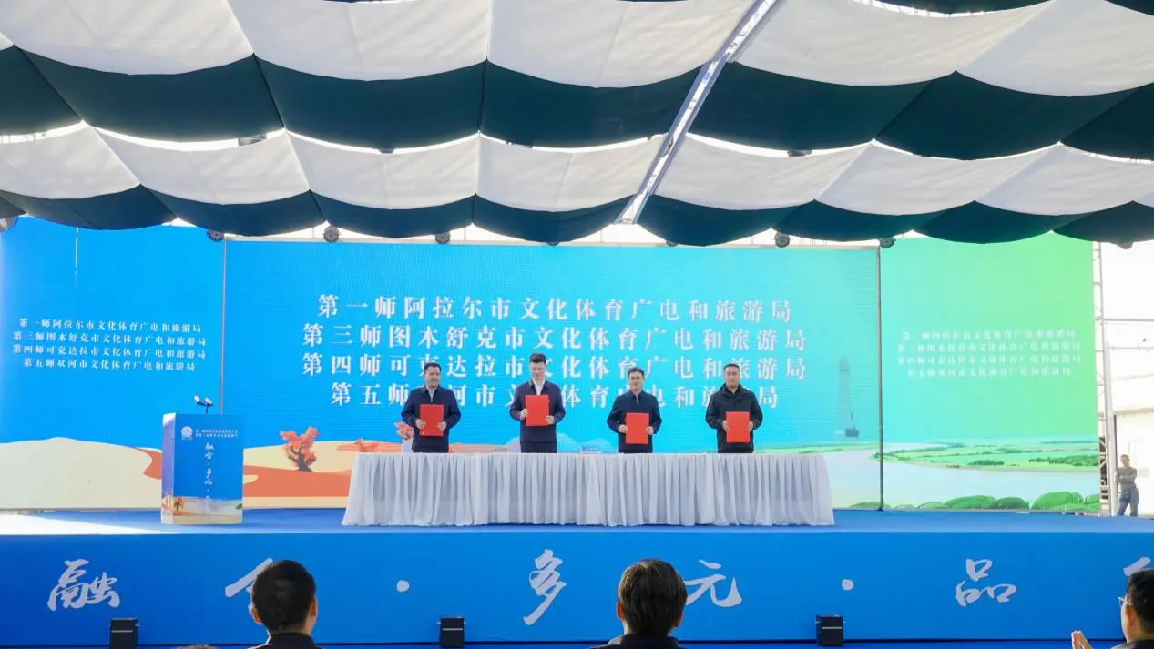 當天,第一師阿拉爾市旅游發(fā)展大會暨第三屆塔里木文化旅游節(jié)文旅客商推介會同步舉辦。第一師阿拉爾市文化體育廣電和旅游局分別與第三師圖木舒克市、第四師可克達拉市、第五師雙河市的文化體育廣電和旅游局簽署合作共建協(xié)議,在旅游產(chǎn)業(yè)領域深化合作,推動區(qū)域文旅協(xié)同發(fā)展。第一師阿拉爾市文化體育廣電和旅游局、塔里木文旅集團,以及第一師四團、七團、十六團依次登臺,重點推介了涵蓋沙漠探險、生態(tài)觀光、民俗體驗等多個領域的文旅項目。