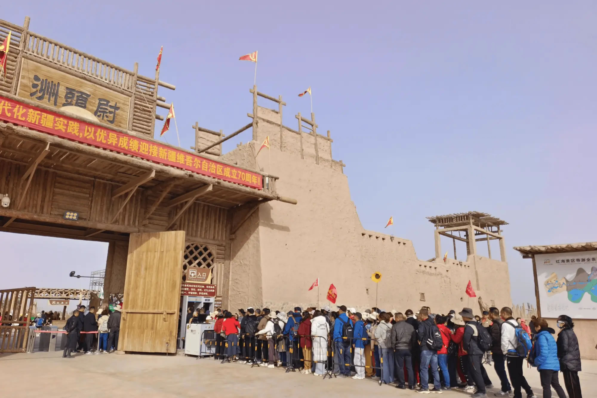 作為第六屆新疆喀什絲路文化胡楊節(jié)的分會(huì)場(chǎng),巴楚縣依托紅海景區(qū),精心策劃了一系列特色活動(dòng),為游客們帶來(lái)多元的文化體驗(yàn)。在尉頭洲城門(mén),開(kāi)幕式的場(chǎng)地已經(jīng)完成設(shè)備調(diào)試,周邊的特色美食展位也已搭建完畢。在“絲路第一馕坑”旁,工作人員正忙碌地籌備著各種美食,屆時(shí),烤全駝、烤牦牛以及烤羊等美食將在此亮相,為游客們帶來(lái)一場(chǎng)味覺(jué)與視覺(jué)的雙重盛宴。
