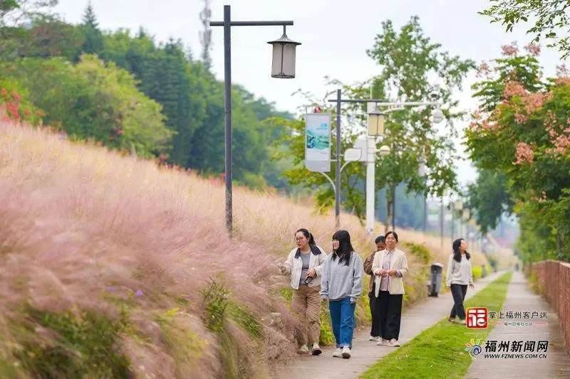 粉色的花海和福州藍,是秋冬季的絕配。對于喜愛這種多巴胺色調(diào)的福州市民來說,烏龍江公園內(nèi)超2萬平方米粉黛亂子草花海不容錯過。這片原先預(yù)計在10月中下旬盛放的花海,遲到了近一個月。11月18日,在秋冬季的大風(fēng)中,這片粉黛亂子草花海終于漸入佳境。據(jù)烏龍江公園管理處相關(guān)負責(zé)人介紹,今年福州天氣較為特殊,花海最佳觀賞點和往年略有不同。未來半個月市民可以感受江畔的粉色童話世界。