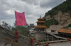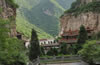 2、抱腹巖的山勢奇特為天下"絕無僅有"。它高60米,寬180米,深50米?梢员Ф儆嚅g殿宇館舍及一兩萬名游人于其中。驚險(xiǎn)壯觀的巖下飛空掛鈴,更為一絕。