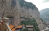 4、“賀知章登山道”,是從巖溝直插巖上的一條險(xiǎn)道。據(jù)《大唐汾州抱腹寺碑》左側(cè)唐代詩人賀知章題記,他當(dāng)年登綿山是先由寺僧用布把他拽到50米以上的“棋盤洞”附近,再由棋盤洞攀100米云梯到云峰寺下;然后沿120和60級石階到鐵索嶺下手抓70余米的鐵索登上鐵索嶺,并一股作氣爬上摩斯塔的。全長500余米的路程幾乎都是75度的絕壁。既是一處奇險(xiǎn)的自然景觀,又具有豐厚的人文歷史,可謂天下奇觀。