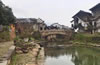 小橋如虹霓跨溪,上面長滿了綠藤,橋下水聲依依,站在不遠(yuǎn)處的水埠上,半圓的橋拱與水中的倒影正好構(gòu)成了一個圓,水波蕩漾,恍如一輪圓月,此景被叫做“楓溪望月”確是名不虛傳。